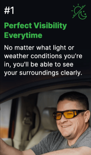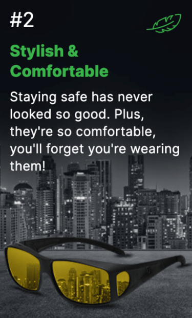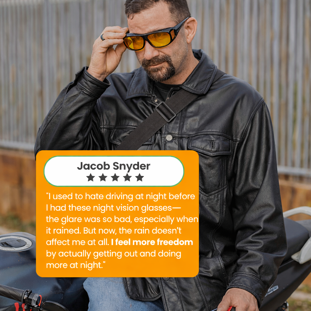 “I was skeptical at first, but WOW! These glasses make night driving feel so much safer. No more blinding headlights! :) They’re comfortable over my prescription glasses and I actually enjoy night drives again. Totally worth it!”
