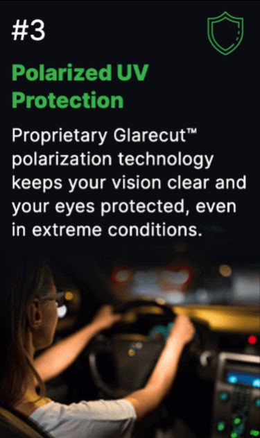 Night Vision Pro’s TAC polarized lenses give you a clear view on the road at night. They even enhance visibility in rain, snow, and fog!